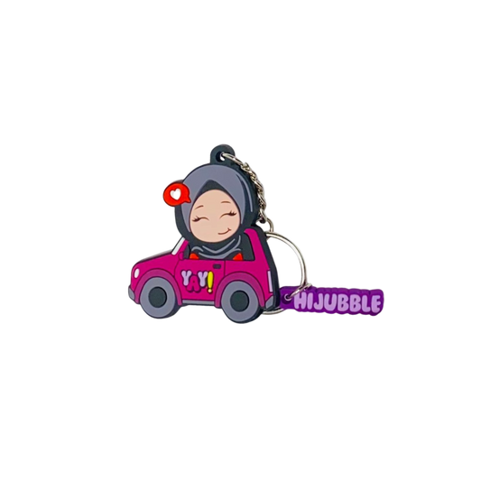 Hijubble Driving Car Keychain - Pink - Cute Hijabi in a Car with Fun Charm
