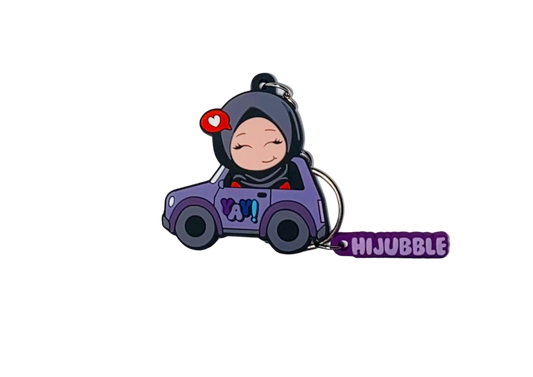 Hijubble Driving Car Keychain - Purple - Cute Hijabi in a Car with Fun Charm
